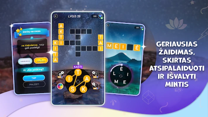 „Raminantys Žodžio Galvosūkiai" nuves Jus į gražiausias ir ramiausias pasaulio vietas. Mėgaukitės priklausomybę sukeliančiu žodžių žaidimu, kuris padės atsipalaiduoti ir lavinti protą. Ideali pramoga ieškantiems ramybės ir iššūkių vienu metu.