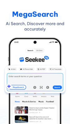 Be to, „Seekee" siūlo pažangias dokumentų valdymo galimybes: išmanųjį PDF failų apdorojimą, patogų konvertavimą tarp daugelio formatų ir efektyvų dokumentų tvarkymą. Nepažįstami objektai? Tiesiog nufotografuokite, ir „Seekee" greitai bei tiksliai identifikuos bet ką, kas jus sudomino, paversdama pasaulio tyrinėjimą nepaprastai paprastu. Su „Seekee" integruotu išmaniuoju vertimu, bendravimas per kalbos barjerus tampa sklandus ir lengvas. Sekite pulsuojančias pasaulio naujienas, nuo sporto įvykių iki pramogų pasaulio tendencijų – „Seekee" nuolat atnaujins jus realiuoju laiku.