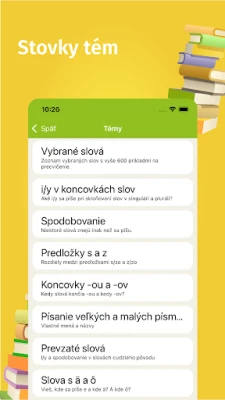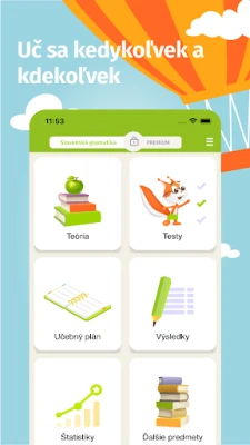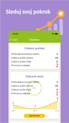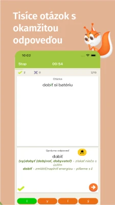 Programa siūlo didžiulį slovakų kalbos testų pasirinkimą, aiškiai suskirstytą į kelias temas ir atitinkantį mokymo programas. Daugelis šių testų yra visiškai nemokami, tad galite pradėti mokytis be jokių kliūčių. Kiekvieno testo rezultatai yra įvertinami ir išsaugomi, leidžiant jums peržiūrėti padarytas klaidas ir sistemingai tobulėti. Be to, visi reikalingi teorijos paaiškinimai ir taisyklės yra akimirksniu pasiekiami – nebereikia ieškoti papildomos literatūros. Programoje rasite testų iš šių esminių sričių: žodžiai su ä/e, y/i po kietųjų ir minkštųjų priebalsių, rinktiniai žodžiai, supanašėjimas, prielinksniai s ir z, didžiųjų ir mažųjų raidžių rašymas, daiktavardžiai, i/y galūnėse, taisyklingas linksniavimas, bendrinė kalba, sakiniai ir sudėtiniai sakiniai, sakinio dalys (veiksnys, tarinys, pažyminys, papildinys ir aplinkybė), brandos egzaminų klausimai, kablelių rašymas, sudvigubintos raidės, tiesioginė kalba, skiemenys.